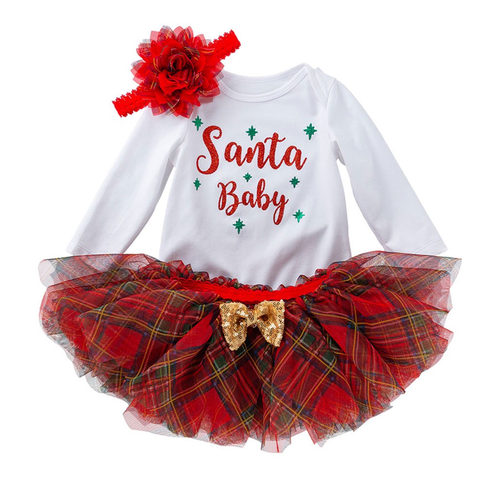 Christmas Baby Girl Outfits Rompers With Plaid Tutu Attached Totally Babies